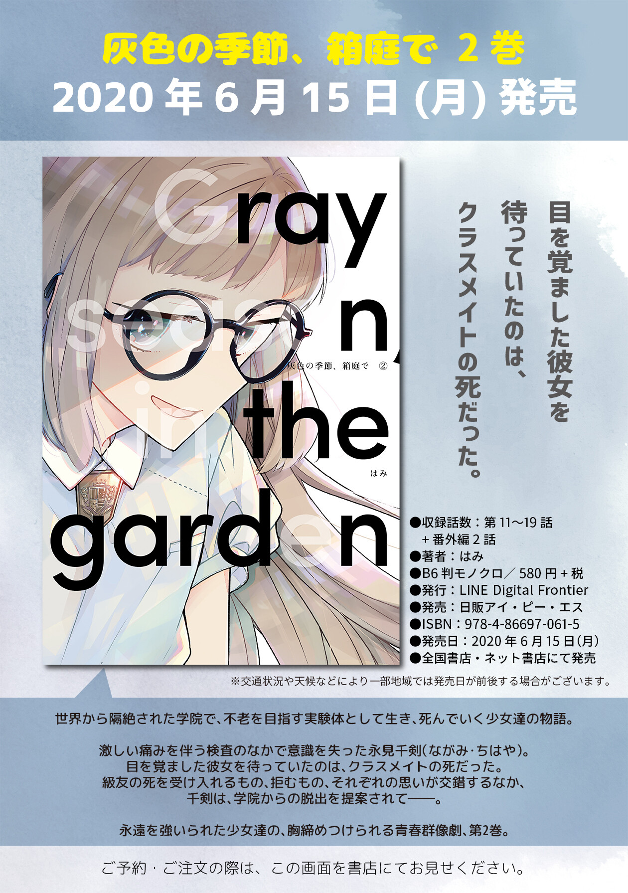 【6/15(月)発売】 >『I rob you』第1巻 >『かくれイタリアン』第2巻 >『きび様といっしょ』第1巻 >『さいこうび』第3巻 >『#ティールブルーの羽色』第1巻 >『灰色の季節、箱庭で』第2巻 >『パンプキンナイト』第4巻 >『ブレデュール家の娘たち』第1巻 >『女神降臨』第2巻 【6/30(火)発売】 >『朝羽振る』第2巻 >『君とのツナガリ』第1巻 >『恋とマコトと浅葱色』第3巻(完結) >『Dの十字架』第5巻 >『めぐるめく季節の中で』第1巻 >『リトル・ロータス』第4巻 |